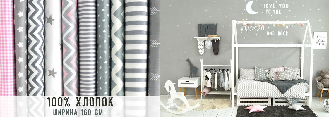 В нашем интернет-магазине вы можете купить ткани для постельного белья, бортиков, детских кроваток и комплектов на выписку, игрушек, декоративных подушек, штор и других элементов домашнего декора, а также для одежды и пеленок для новорожденных.