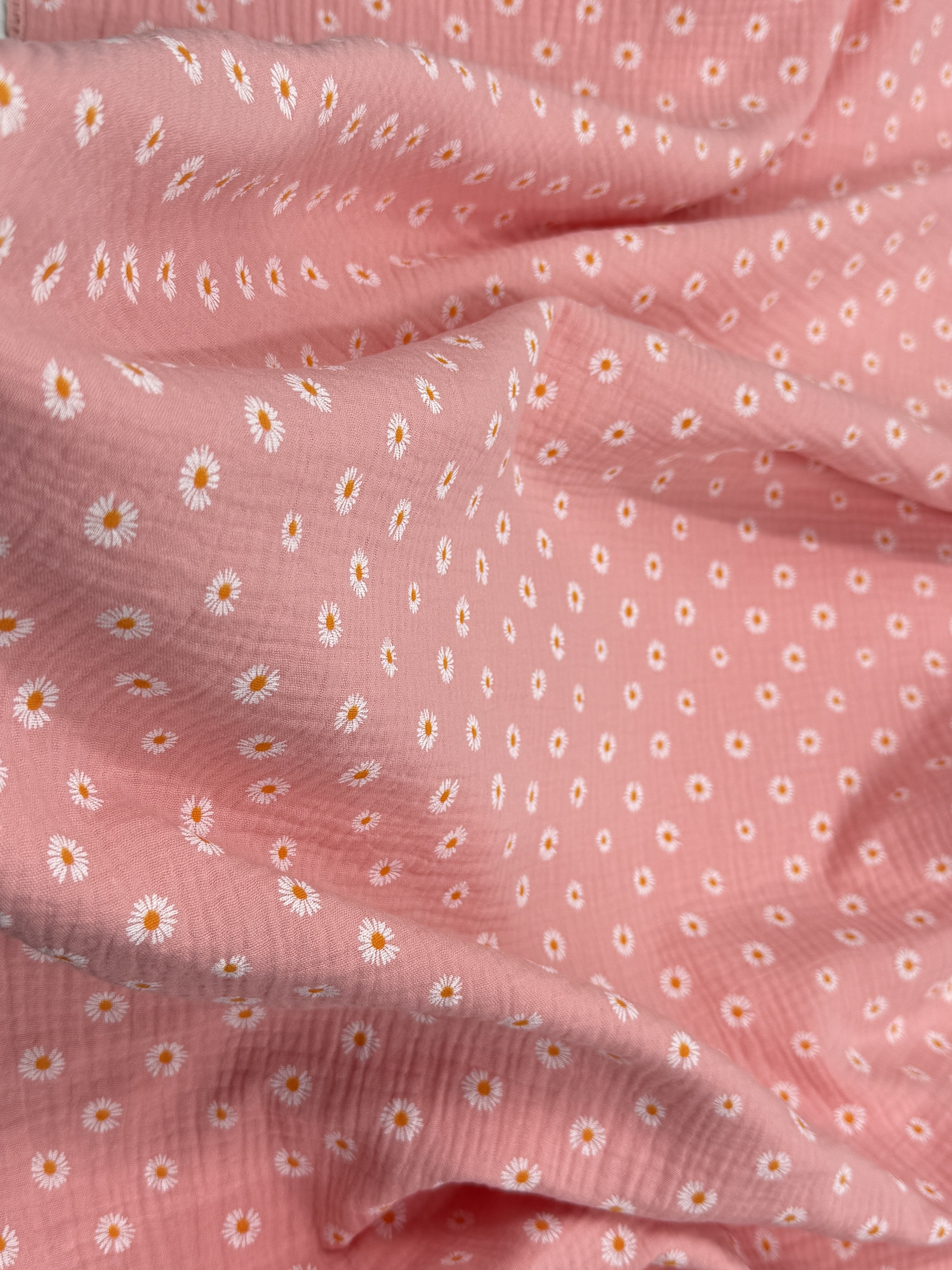 Несмотря на свою воздушность, хлопковый муслин – долговечная и прочная ткань. Хорошо драпируется и быстро высыхает. Рекомендуемый режим стирки - деликатные ткани (30-40°).