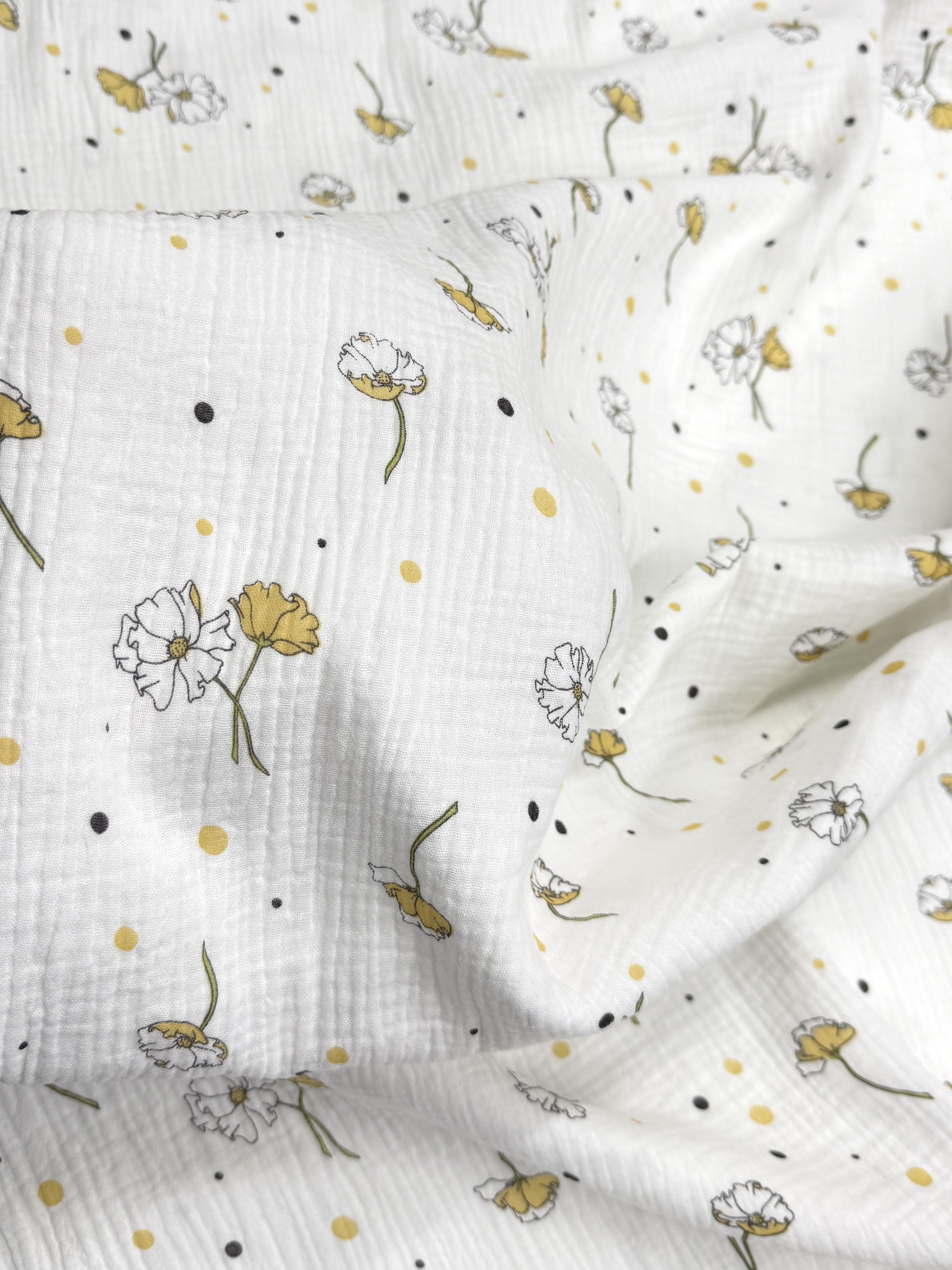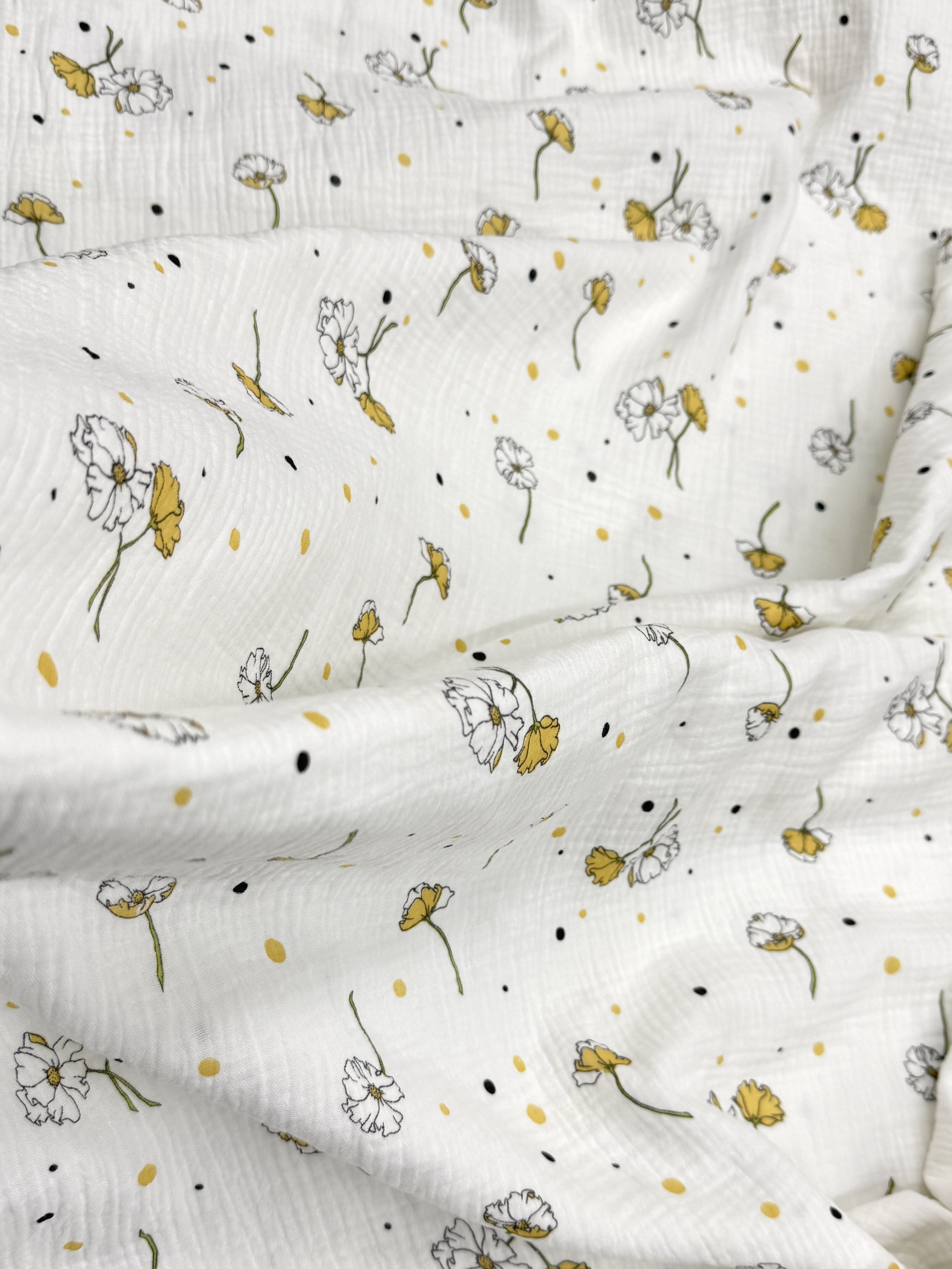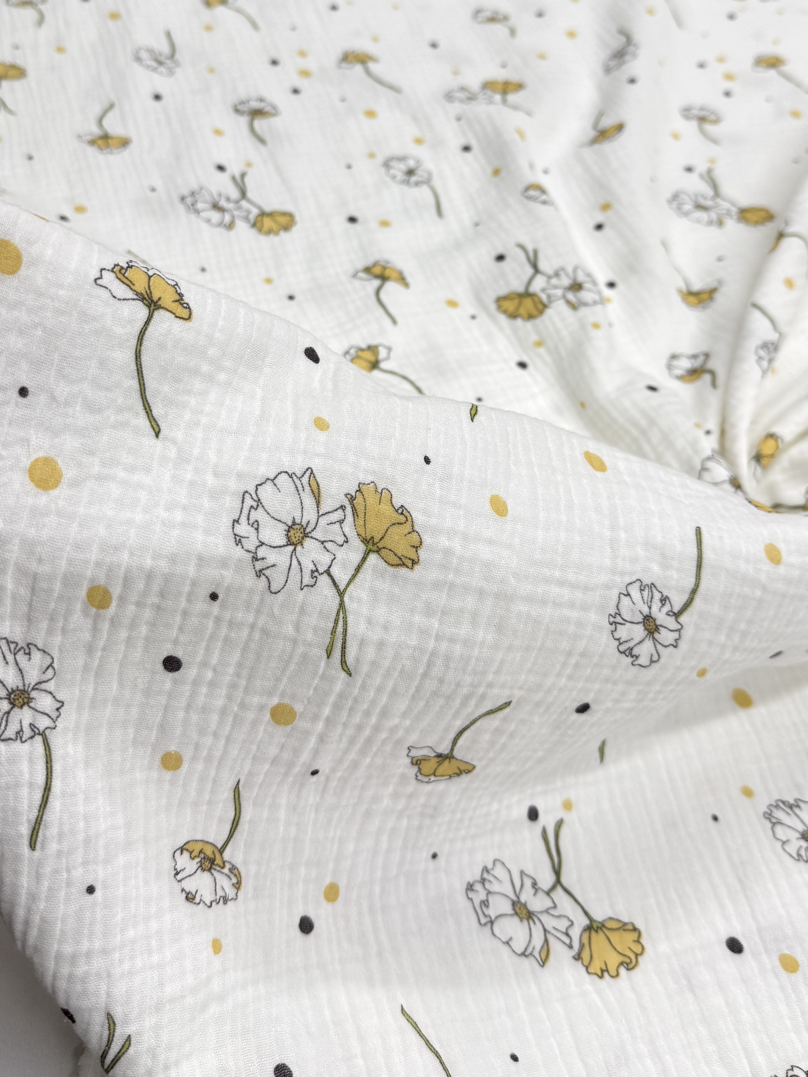 Ткань муслиновая, цветы желтые